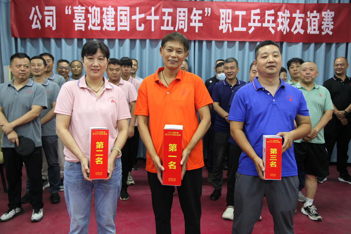 經過一周的“乒”搏奮進、激烈角逐,物業(yè)管理代表隊、機關代表隊、制造中心代表隊分別獲得團體一、二、三名;離退休代表隊周京蓮、制造中心代表隊郭曉明、機關代表隊李炯基分獲冠、亞、季軍。公司領導對獲獎選手們表示祝賀并為他們頒發(fā)了獎牌和獎品,職工乒乓球友誼賽圓滿落下帷幕。